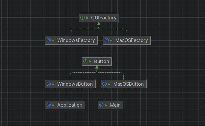 위 코드에서, Main 클래스에서는 운영체제를 확인하여 MacOSFactory 또는 WindowsFactory를 생성합니다. 그리고 Application 클래스에서는 생성된 팩토리 객체에서 createButton 메서드를 호출하여 버튼 객체를 생성하고 paint 메서드를 호출하여 버튼을 그립니다.